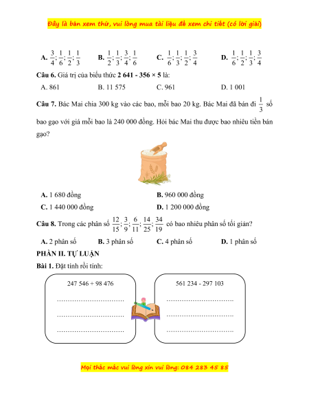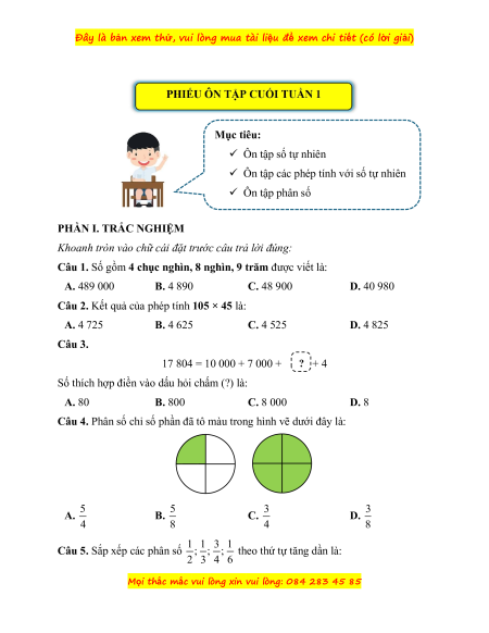Ôn tập các phép tính với số tự nhiên Ôn tập phân số PHẦN I. TRẮC NGHIỆM