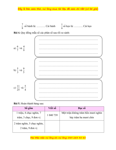Bài 5. Hoàn thành bảng sau: Số gồm Viết số Đọc số 1 triệu, 4 chục nghìn, 7