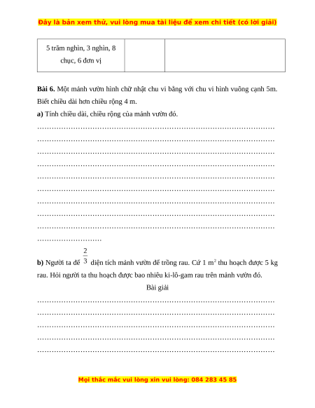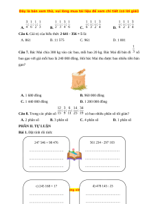 Câu 7. Bác Mai chia 300 kg vào các bao, mỗi bao 20 kg. Bác Mai đã bán đi số