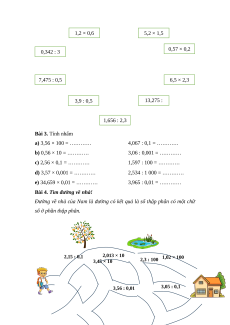 Bài 2. Nối các phép tính có kết quả bằng nhau 3,54 × 2,5 1,2 × 0,6 5,2 × 1,5 0,342 : 3 0,57 × 0,2 7,475 : 0,5 6,5 × 2,3 3,9 : 0,5 13,275 : 1,5 1,656 : 2,3 Bài 3. Tính nhẩm