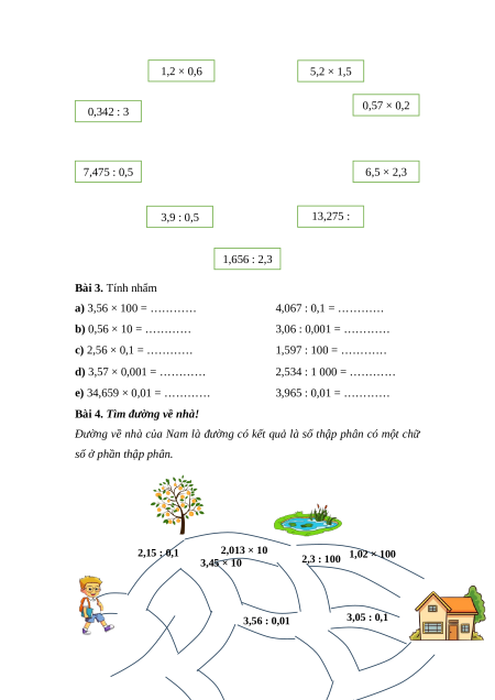 Đường về nhà của Nam là đường có kết quả là số thập phân có một chữ