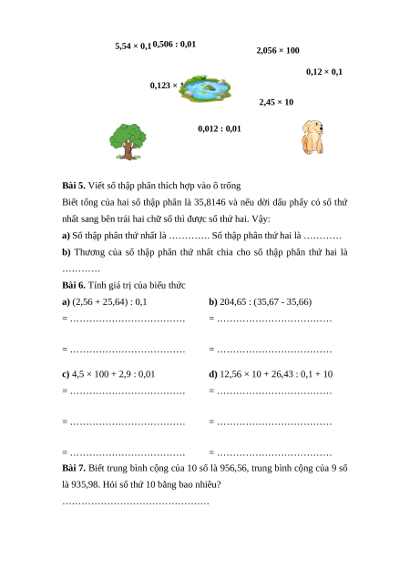 Bài 5. Viết số thập phân thích hợp vào ô trống