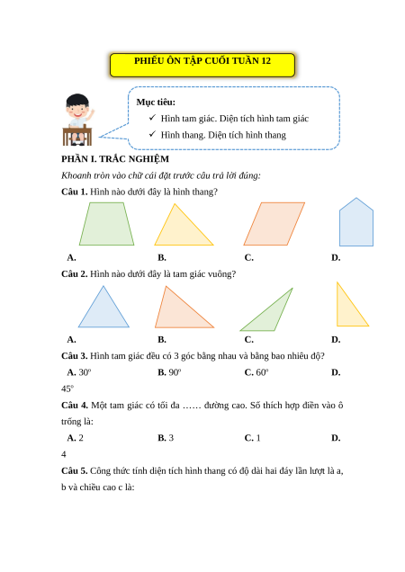 PHIẾU ÔN TẬP CUỐI TUẦN 12 Mục tiêu: