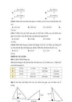 Câu 8. Một hình thang có diện tích bằng 21,45 m2 và chiều cao bằng 3,9