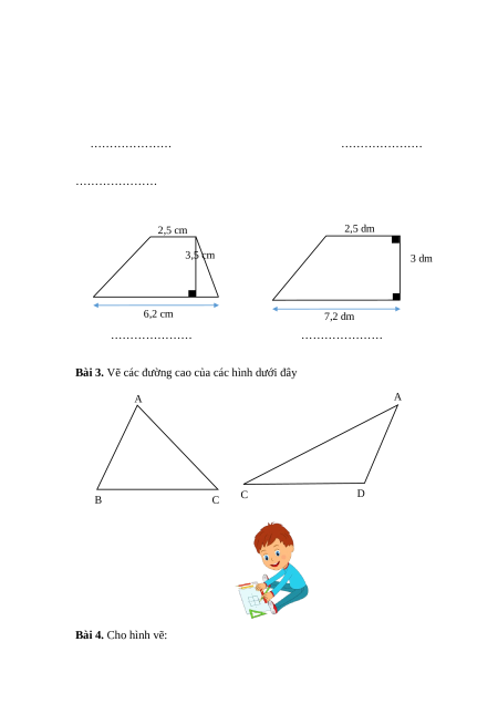 Bài 3. Vẽ các đường cao của các hình dưới đây A A B C C D Bài 4. Cho hình vẽ: Hình 1 Hình 2