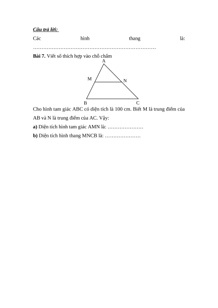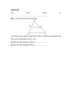 Câu 7. Diện tích của hình tam giác là 3,85 dm. Chiều cao của hình tam