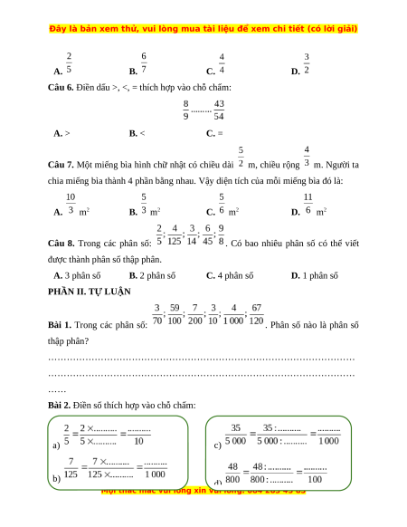 được thành phân số thập phân. A. 3 phân số B. 2 phân số C. 4 phân số D. 1 phân số PHẦN II. TỰ LUẬN