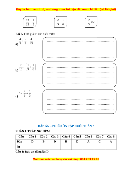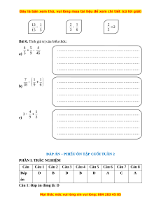 ĐÁP ÁN – PHIẾU ÔN TẬP CUỐI TUẦN 2
