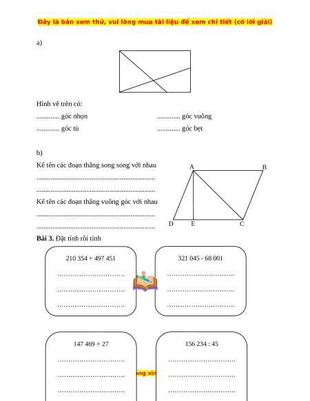a) Hình vẽ trên có: ............. góc nhọn ............. góc vuông ............. góc tù ............. góc bẹt b)