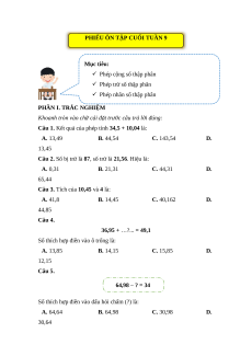 PHIẾU ÔN TẬP CUỐI TUẦN 9 Mục tiêu: