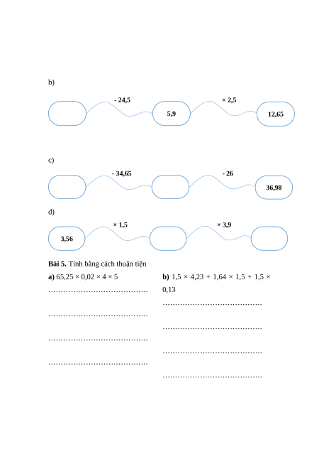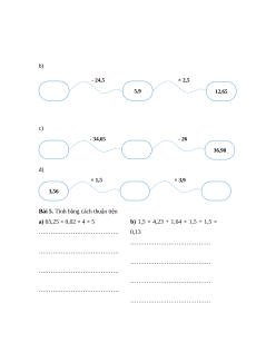 Bài 4. Điền số thích hợp vào ô trống a) + 56,02 × 2 12,65 b) - 24,5 × 2,5 5,9 12,65 c) - 34,65 - 26 36,98 d) × 1,5 × 3,9 3,56