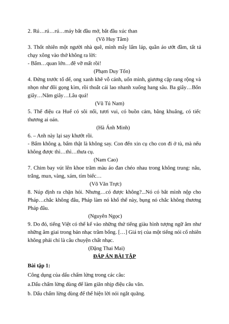 không phải chỉ là câu chuyện chất nhạc. (Đặng Thai Mai) ĐÁP ÁN BÀI TẬP Bài tập 1: