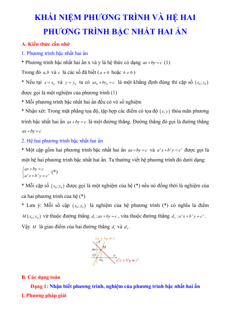 PHƯƠNG TRÌNH BẬC NHẤT HAI ẨN