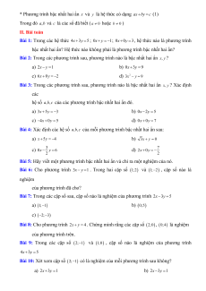 Bài 9: Trong các cặp số 2; 1 và 1;0 , cặp số nào là nghiệm của phương trình 4x 3y 5