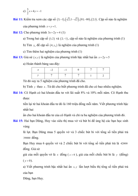 b) Cặp số ;x y 6000;3000 có phải là nghiệm của từng phương trình bậc nhất đó hat không? Vì sao?
