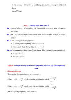Dạng 3: Tìm nghiệm tổng quát và vẽ đường thẳng biểu diễn tập nghiệm phương trình I. Phương pháp giải