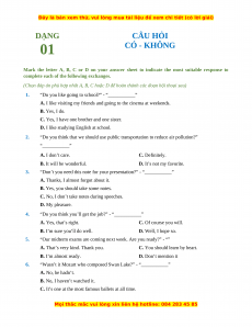 DẠNG CÂU HỎI CÓ - KHÔNG 01