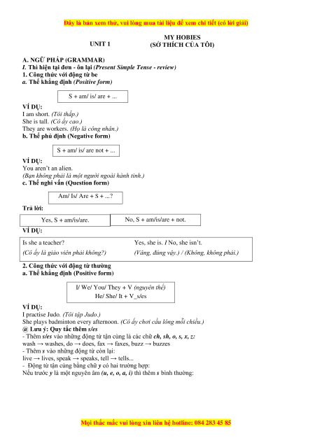 (SỞ THÍCH CỦA TÔI) A. NGỮ PHÁP (GRAMMAR)