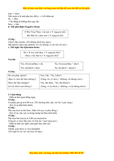 I. Thì hiện tại đơn - ôn lại (Present Simple Tense - review)