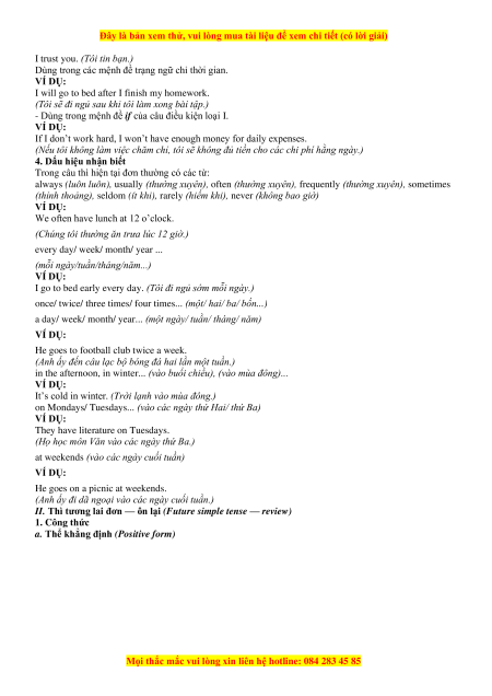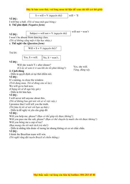 b. Thể phủ định (Negative form) will not = won’t VÍ DỤ: