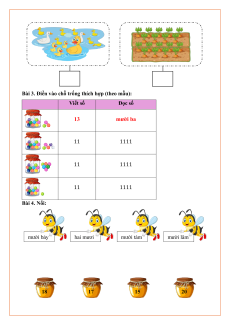 Bài 3. Điền vào chỗ trống thích hợp (theo mẫu): Viết số Đọc số 13 mười ba 11 1111 11 1111 11 1111 Bài 4. Nối: mười bảy hai mươi mười tám mười lăm 18 17 15 20