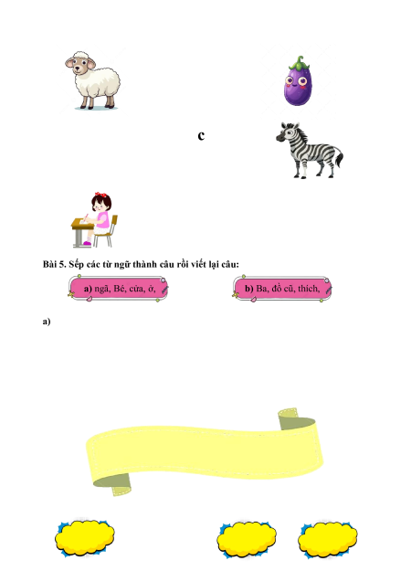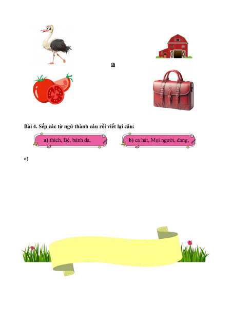 Bài 4. Sếp các từ ngữ thành câu rồi viết lại câu: