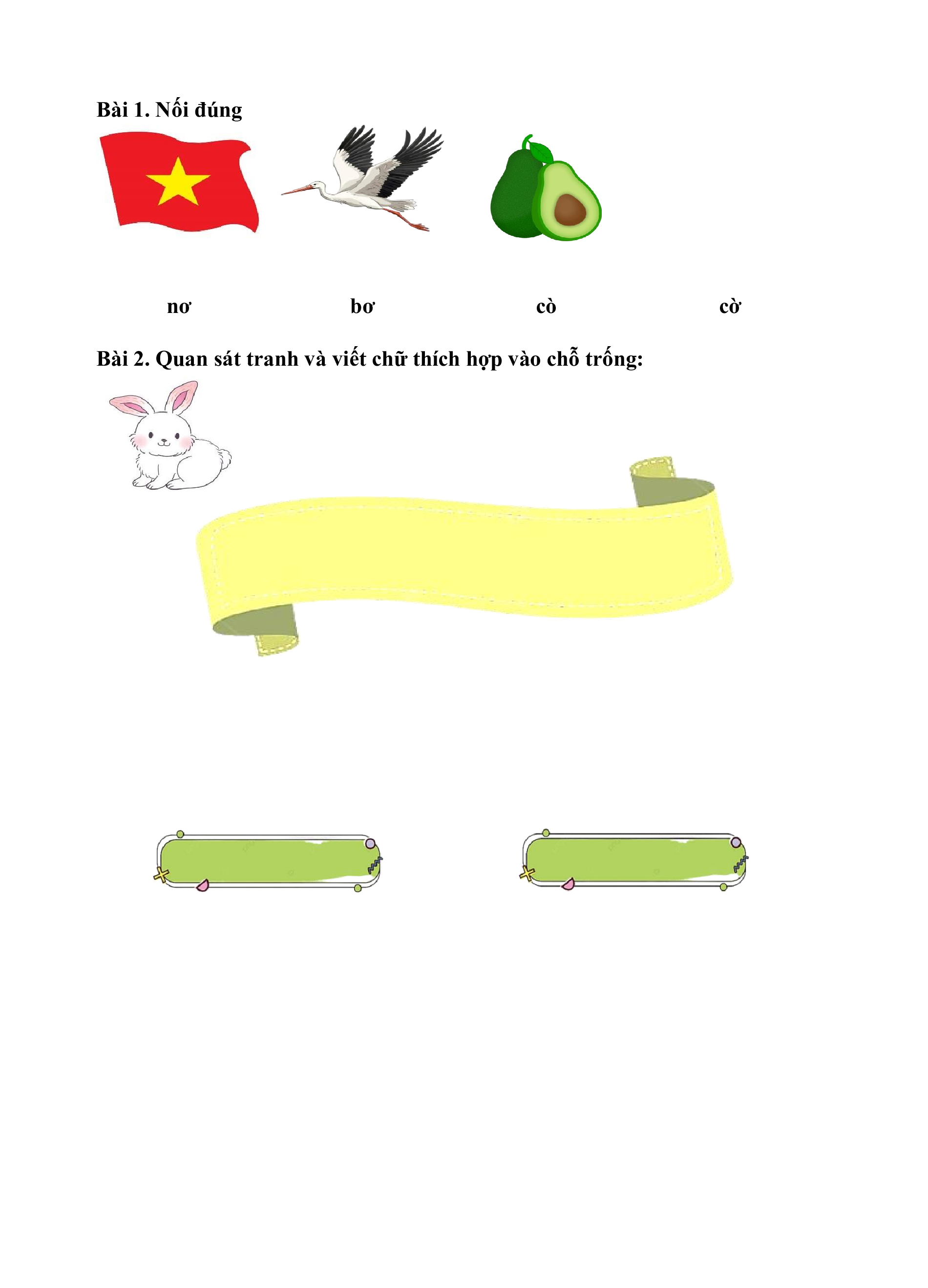 Bài 1. Tô màu vào chữ đúng với hình: còcô cô ô cỏ cò