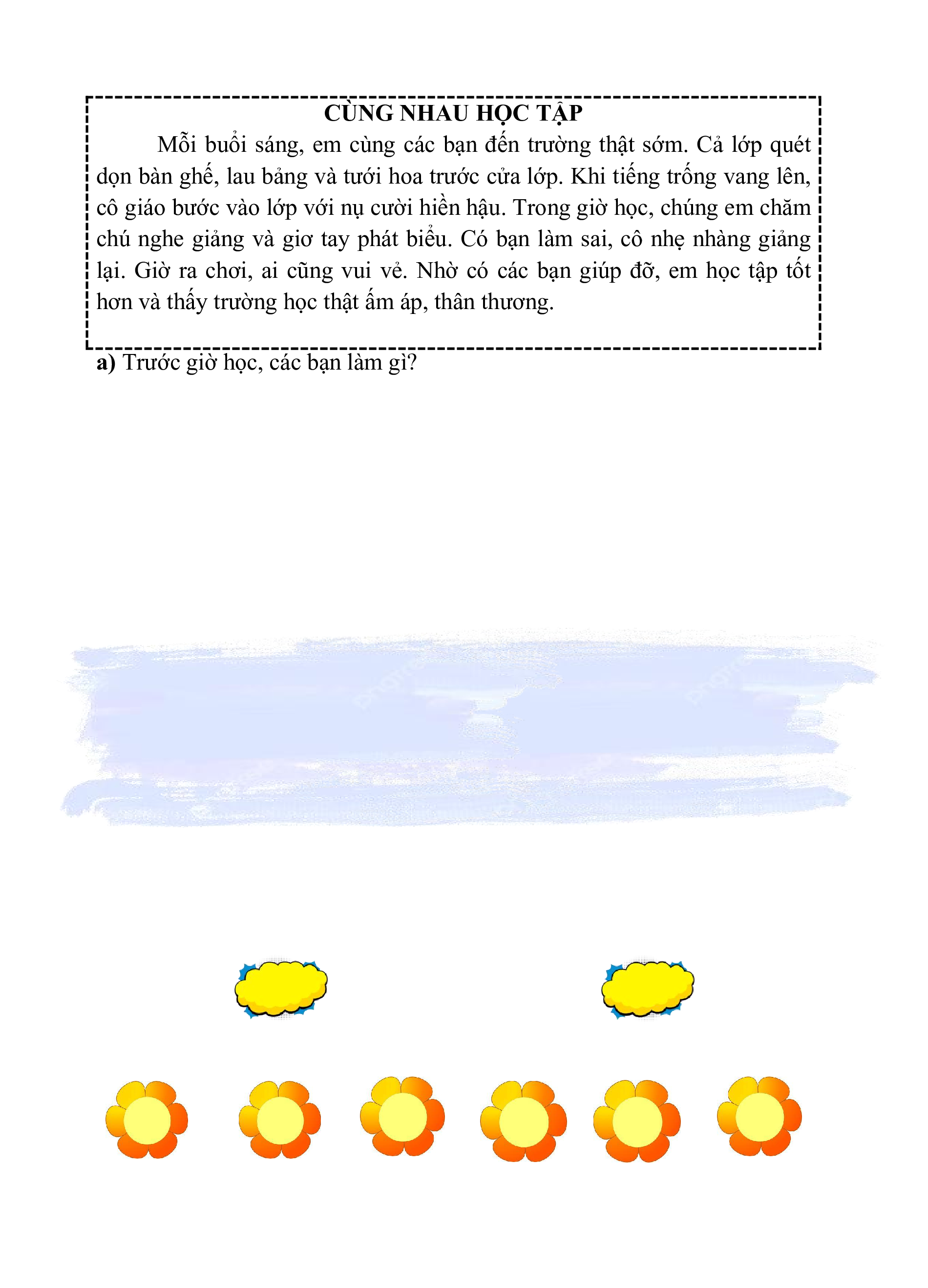 a) Trước giờ học, các bạn làm gì? 111111111111111 111111111111111