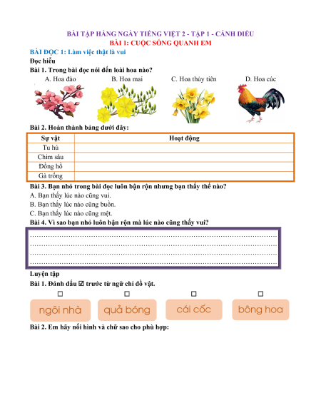 BÀI TẬP HẰNG NGÀY TIẾNG VIỆT 2 - TẬP 1 - CÁNH DIỀU