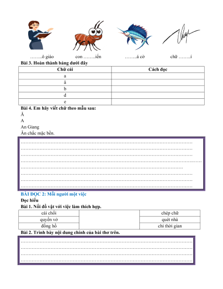 BÀI ĐỌC 2: Mỗi người một việc Đọc hiểu