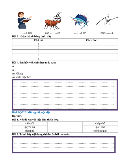 Bài 3. Hoàn thành bảng dưới đây Chữ cái Cách đọc a â b d e