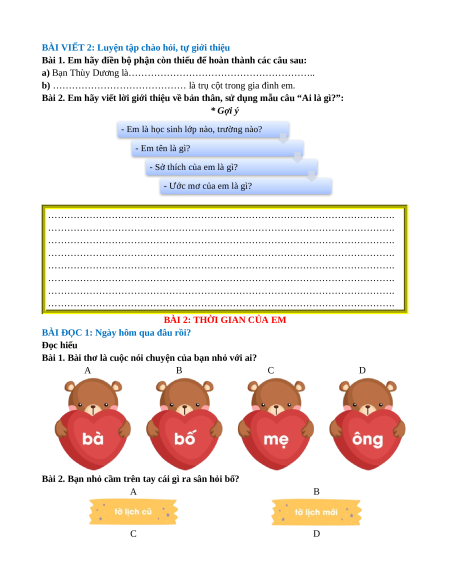 Bài tập hàng ngày Tiếng Việt lớp 2 Cánh diều Học kì 1