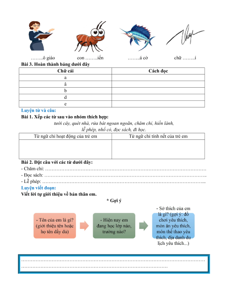 Bài 3. Hoàn thành bảng dưới đây Chữ cái Cách đọc a â b d e Luyện từ và câu: