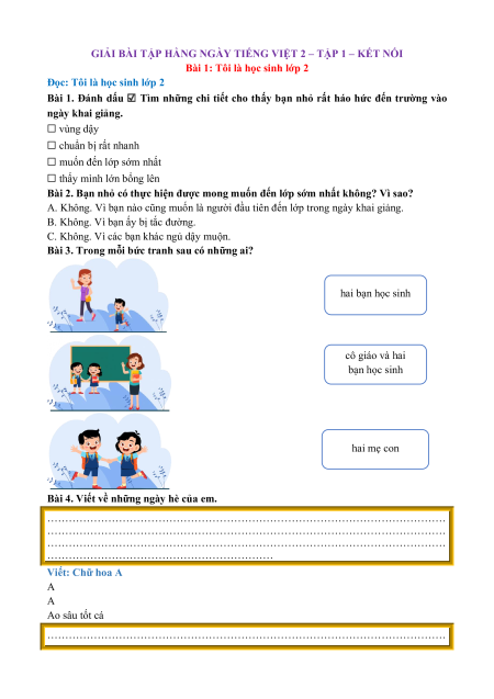 GIẢI BÀI TẬP HẰNG NGÀY TIẾNG VIỆT 2 – TẬP 1 – KẾT NỐI