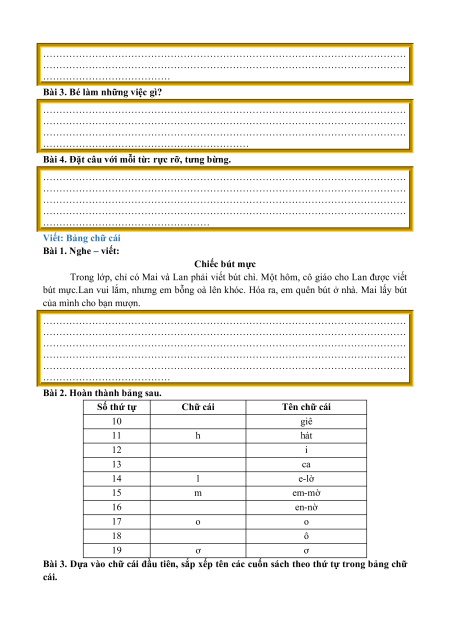 Bài 2. Sắp xếp các chữ cái sau theo đúng thứ tự trong bảng chữ cái.