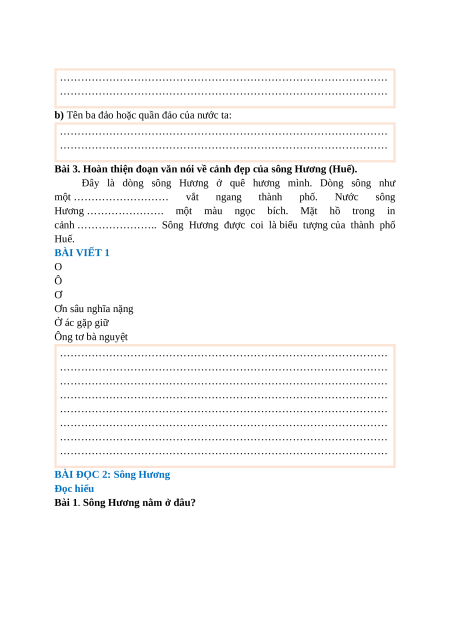 Bài 3. Hoàn thiện đoạn văn nói về cảnh đẹp của sông Hương (Huế).