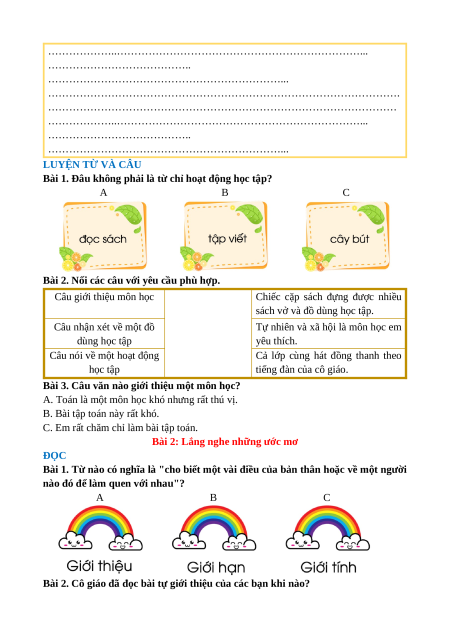 Bài 1. Đâu không phải là từ chỉ hoạt động học tập? A B C