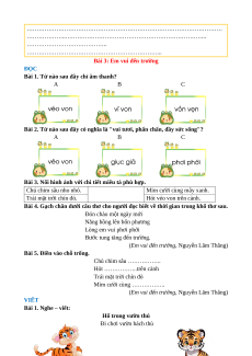 Đề bài - Bài tập hằng ngày tiếng việt 3 – Chân trời sáng tạo - HKI
