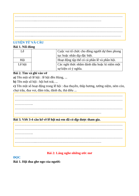 Bài 3. Viết 3-4 câu kể về lễ hội mà em đã có dịp được tham gia.
