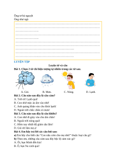 Bài 1. Chọn 2 từ chỉ hiện tượng tự nhiên trong các từ sau. A. Gió. B. Mưa. C. Nóng. D. Lạnh.