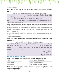 Bài 2. Em hãy viết nội dung chính cho một bức thư thăm hỏi người thân.