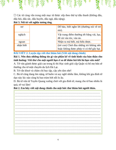 BÀI TẬP HẰNG NGÀY TIẾNG VIỆT 4 – CÁNH DIỀU – HỌC KÌ II.