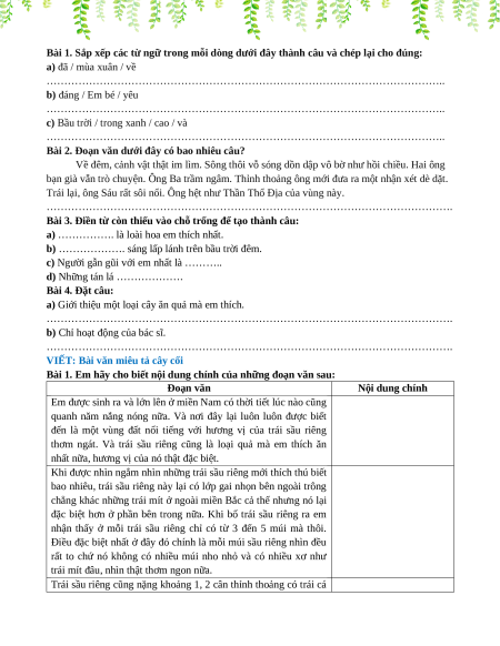 d) Những tán lá ………………. Bài 4. Đặt câu: