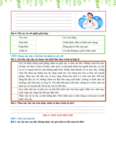 VIẾT: Quan sát, tìm ý cho bài văn miêu tả cây cối
