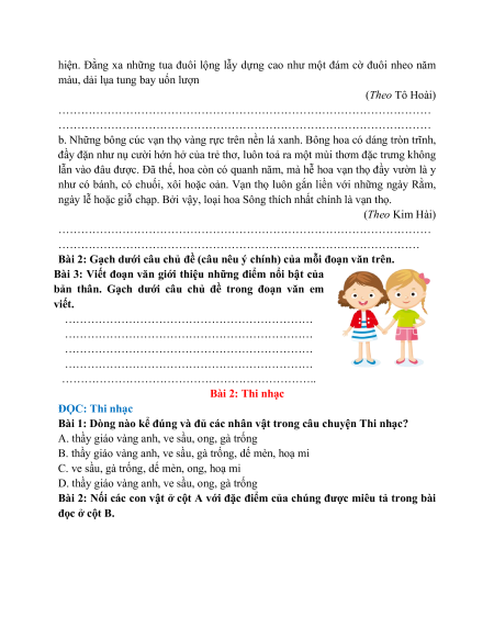 Bài 4: Thông qua việc kể về buổi thi nhạc của các học trò thầy giáo vàng anh,