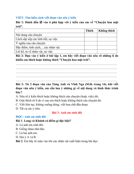 BÀI TẬP HẰNG NGÀY TIẾNG VIỆT 4 TẬP 1 – KẾT NỐI TRI THỨC