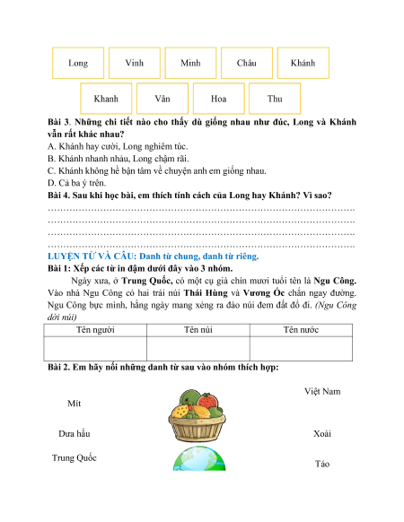 LUYỆN TỪ VÀ CÂU: Danh từ
