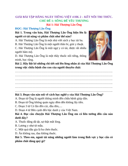 Bài 1. Trong văn bản, Hải Thượng Lãn Ông hiện lên là