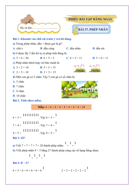 Họ và tên:…………………. . . BÀI 37. PHÉP NHÂN