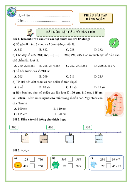 BÀI 1. ÔN TẬP CÁC SỐ ĐẾN 1 000